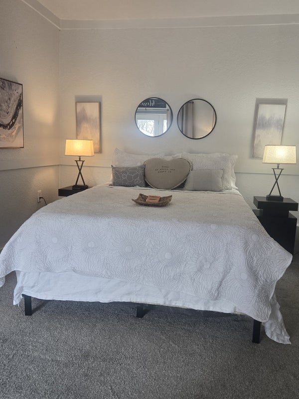 This fully furnished studio apartment offers a complete kitchenette, a well-appointed laundry room within the unit, and includes utilities such as power, internet, and cable. The property is situated on two acres, providing a tranquil environment.