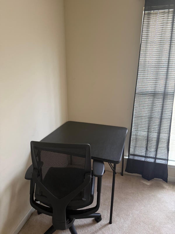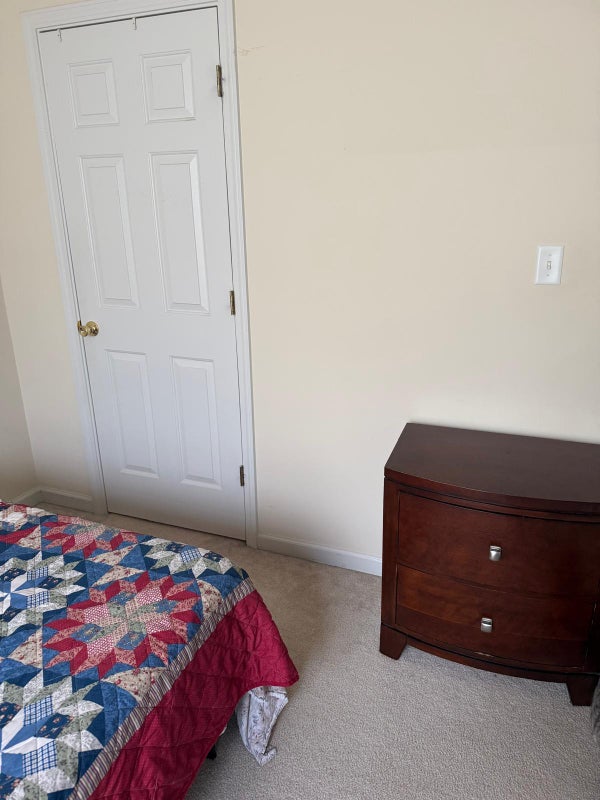 Queen bedroom with closet, nightstand, table, and 9 cube storage. Anytime access to kitchen and living room. Shared bathroom. I do have small pets on premises.