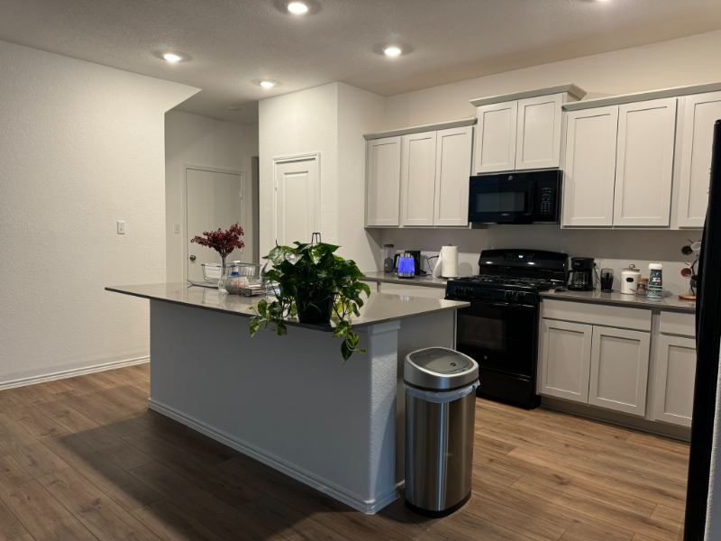 The Space: sq. ft. room on top floor with shared bath. bed, .bath singlefamily home (, sq. ft.) built in . Open floor plan with modern kitchen and two living spaces (upstairs and downstairs). Laundry on first floor.