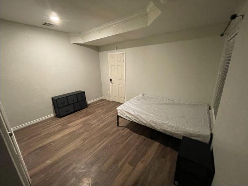 Room for Rent! This bedroom has full bed frame & mattress, nightstand, dresser & wardrobe! Monthtomonth lease! NO security deposit! Shared bathroom. Monthly cleaning for the common areas is included! Keyless door lock with private code for each resident! Room is unfurnished, has full size bed frame only.