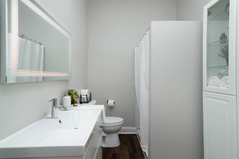 This spacious Bedroom, Bathroom, has recently been remodeled with a brand new kitchen with quartz countertops and a farmhouse sink, stainless steel appliances, and hardwood floors. The bathroom has been fully remodeled with brandnew flooring, vanity, and shower.