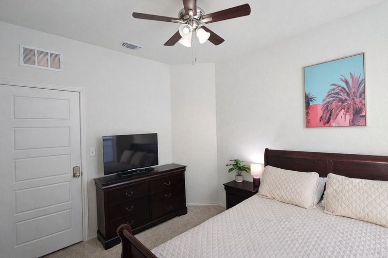🏠 The Home Fully furnished common areas Spacious living room with large TV Modern kitchen with plenty of counter space Washer & dryer included Large fenced backyard with a covered patio—perfect for unwinding after long days while staying cool in the San Antonio heat