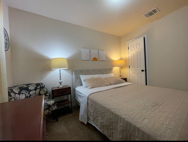 Nice furnished Room for rent in quiet space. Queen size bed Clean, west of San Antonio. washer/dryer, blackout Curtains, fiber internet, all bills included Fully Equipped kitchen, backyard.