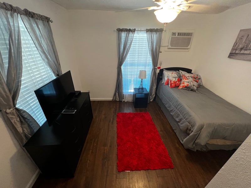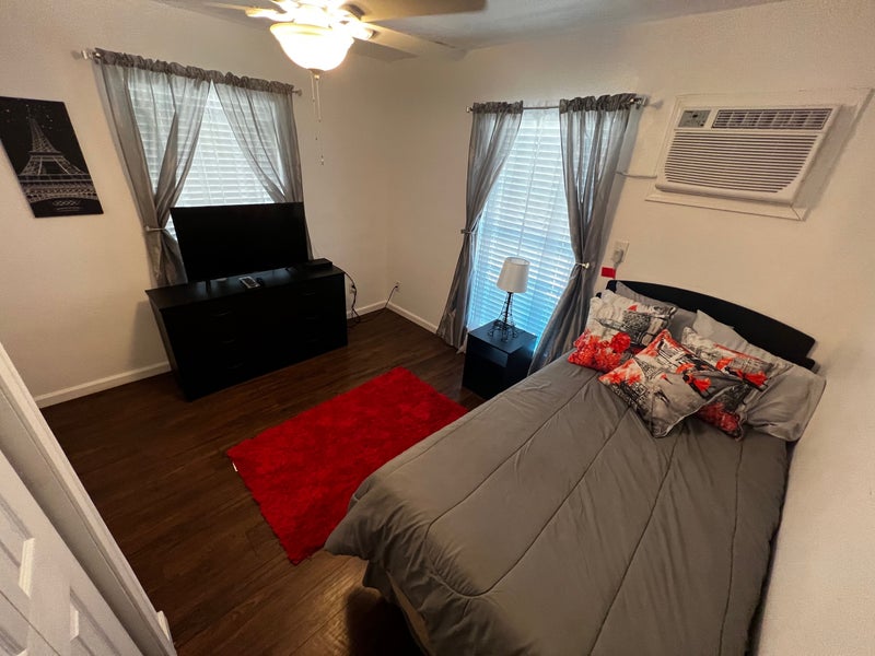 A privately furnished bedroom is available for rent at $650 per month, with all utilities paid, including electricity, water, and WiFi. The residence offers a clean, tranquil environment, situated on the east side of San Antonio, between downtown and the Frost Bank Center. It is conveniently located near the grocery store and the nearest bus stop. The property is a newly remodeled, gated residence. Prospective tenants must be willing to share the accommodation with both males and females. Currently, the household comprises two males.