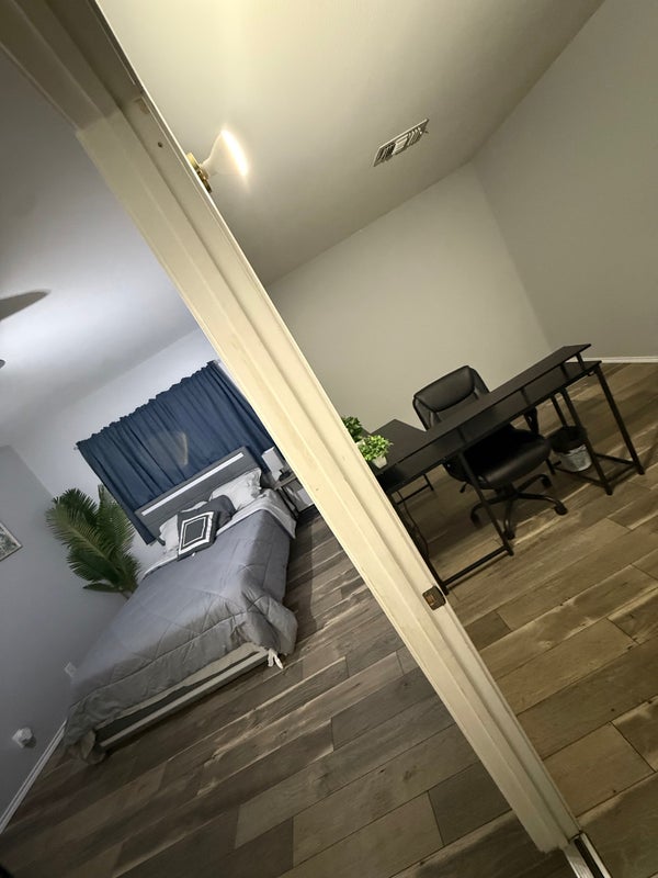 This unique layout includes: • Private sleeping area • Dedicated in-room office space with desk • Walk-in closet • TV included • Bi-weekly professional cleaning • In-home laundry access • Private parking • Shared common areas (clean and well maintained)