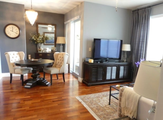 Features of this tastefully updated home include beautifully remodeled bathroom, cherry hardwood flooring, beautiful custom lighting, pull-out drawers in kitchen and custom built-ins in closets, pretty, neutral paint decor