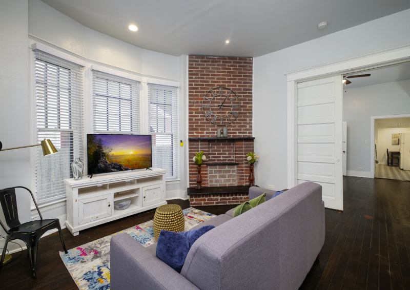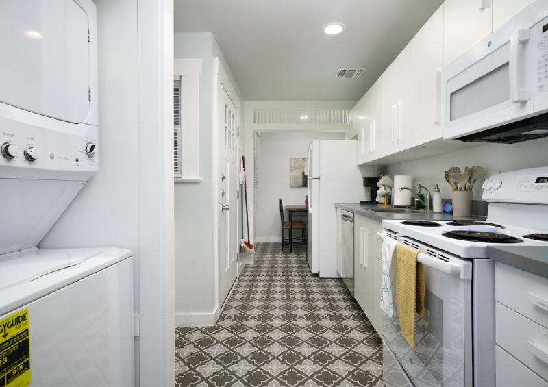 This spacious, welldesigned unit is ideal for business travelers, small families, or roommates. Featuring two private bedrooms, two updated bathrooms, a full kitchen, and a cozy living area, it's a turnkey home away from home. Great for midterm corporate stays or bookings.