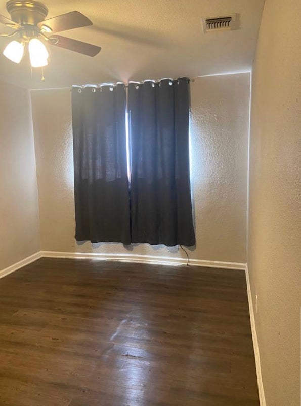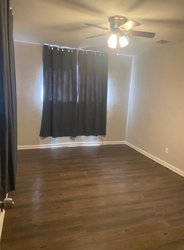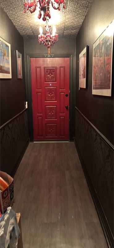 Private bedroom available in a home near the Kirby area. The house has a unique Gothic-inspired interior with dramatic colors and vintage-style décor, giving the space a lot of personality and character.