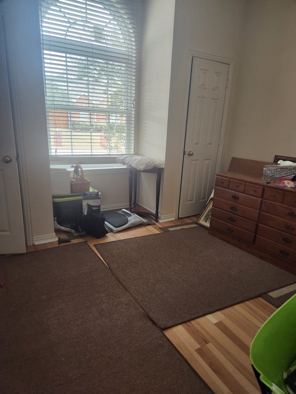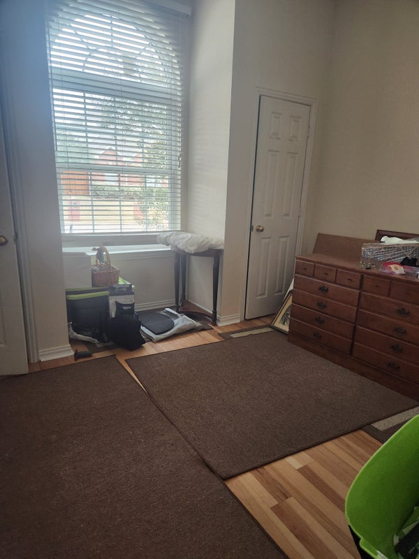 Right now, the room has some totes, but I will move them. I just had the house hardwooded and fresh paint. Room is about 10 by 10 or 12...adjoining bathroom. I have a refrigerator...washer and dryer. Room is beige in color. I have a brand new area rug. Sorry.. I do not know how to write these ads. I have things to give away since I am doing a lot of unloading in my life. Again.. room will be cleared ..if I decide not to sell...Cute rabbits in the back yard.. they think they are pets. Nice patio with trees.. patio ..could do a bbq, etc....I am trying to add another photo.. still need to get more ..everything out.. but photos I have now are in the light