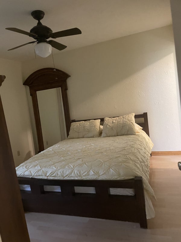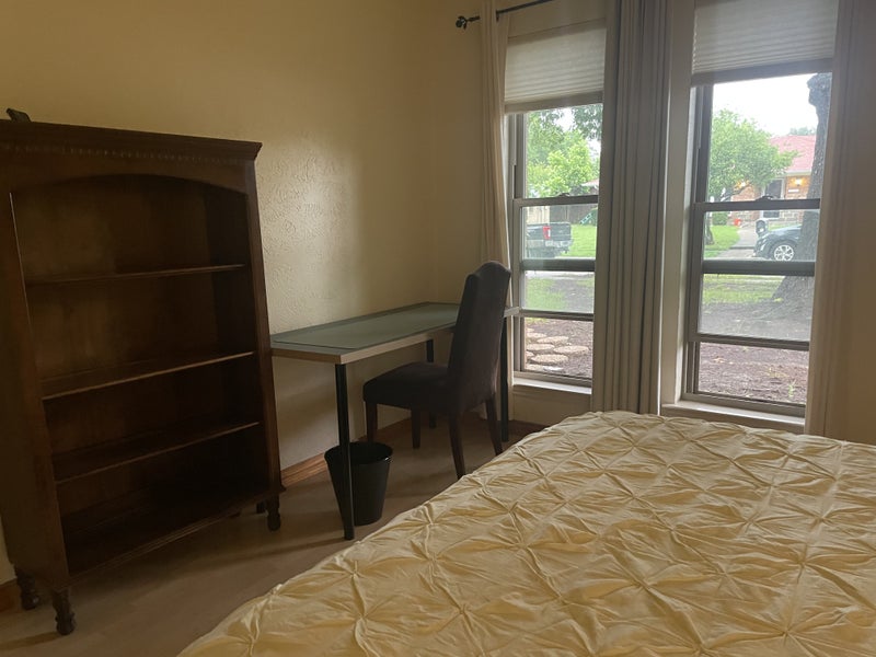 Furnished 12x12 bedroom with three closets . Private full bath and shower in Jack and Jill bath . Garage space available for additional $150. Per month . Clean clean kitchen use agreement . Month to month with 60 day notice for refundable deposit. No pets no smoking . Ideal, clean, quiet privacy . I travel extensively for pleasure and teach ESL in Dallas private school . My other tenant is employed . Please call for appointment to view room and house. Must be employed outside the home . ID and employer verification before given address and appointment date. . References a plus