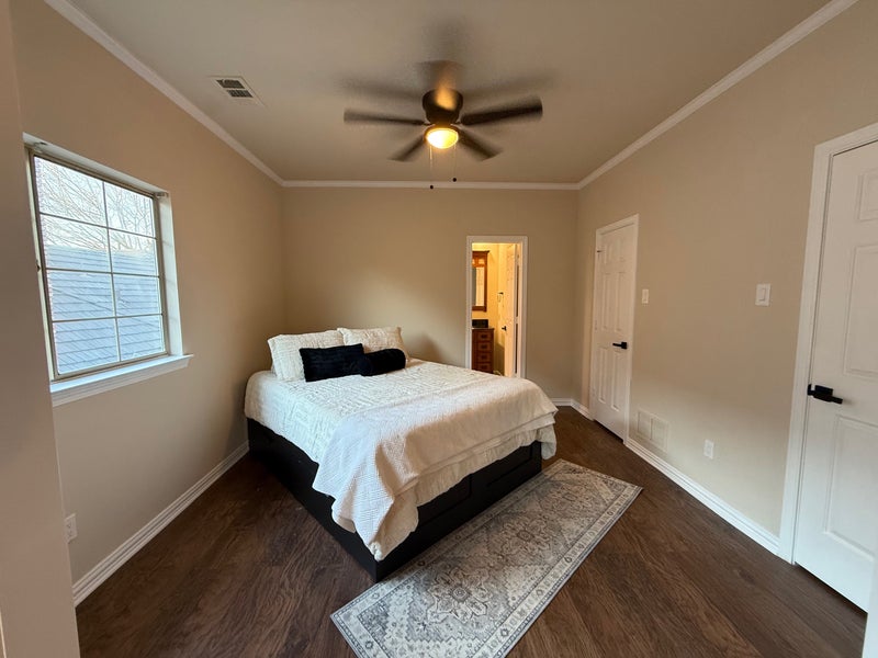 Quiet, spacious private bedrooms, each with private luxury bathroom and spacious closet in large executive home. Room 1 ($1395/month) has a queen size bed, extensive storage, and the opportunity for a desk in place of a storage unit, Room 2 includes 1 bedroom with private bathroom and private den/living room along with huge closet spaces. Both include 55” nch new Amazon fire smart TV with multiple streaming subscriptions, and other comforts. Rooms located on upper floor of a spacious executive home in a premier, safe, quiet, family neighborhood minutes from the popular Legacy business district, Legacy West restaurant/entertainment district, two blocks from a bike and walking trails and bus stop, and 5 to 7 minutes Presbyterian Plano Hospital, Baylor, Centennial Hospital, Baylor, Plano Hospital, and Medical Center of Plano. In addition to your private space, you will enjoy access to a fully equipped kitchen, spacious living room, with grand piano, formal dining room, den, laundry room, and other comfortable shared space. Utilities included. Homeowners are empty nester professional and general contractor with a boxer companion. Your house trained dog is welcome with a nonrefundable pet deposit. Large fenced yard and patio. Dog door. Spaces generally contemplate single occupant but will consider couples to occupy space with private den for additional utility fee.