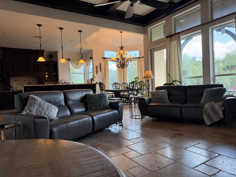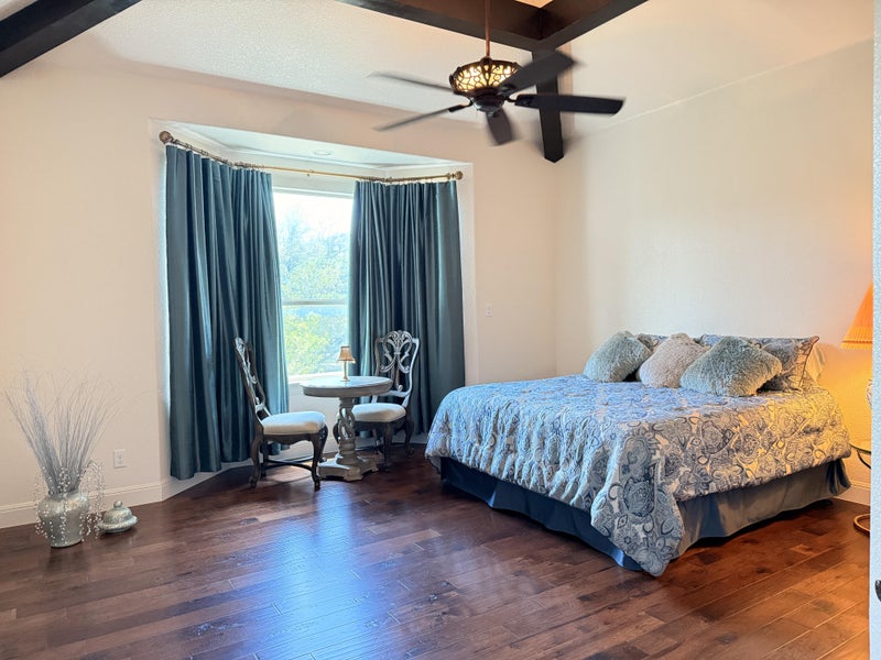 My home has a down stairs and upstair bedroom. The home was built as a dual first floor dula master down stairs with an upstairs that has a full secluded living area fully furnished with a beautiful balcony where you can enjoy the peace and quite and gorgeous sunsets. My home provides the up scale amenities with a luxurious open floor plan. The kitchen provides and open concept for for friends and family gatherings. My home sits on an 1 acre lot, it is in a gated and cameras for added peace of mind. There is a community pool and park area. This home is minutes away from San Antonio, Boerne, Stone Oak (San Antonio). It's a great location to get to any where around the area.
