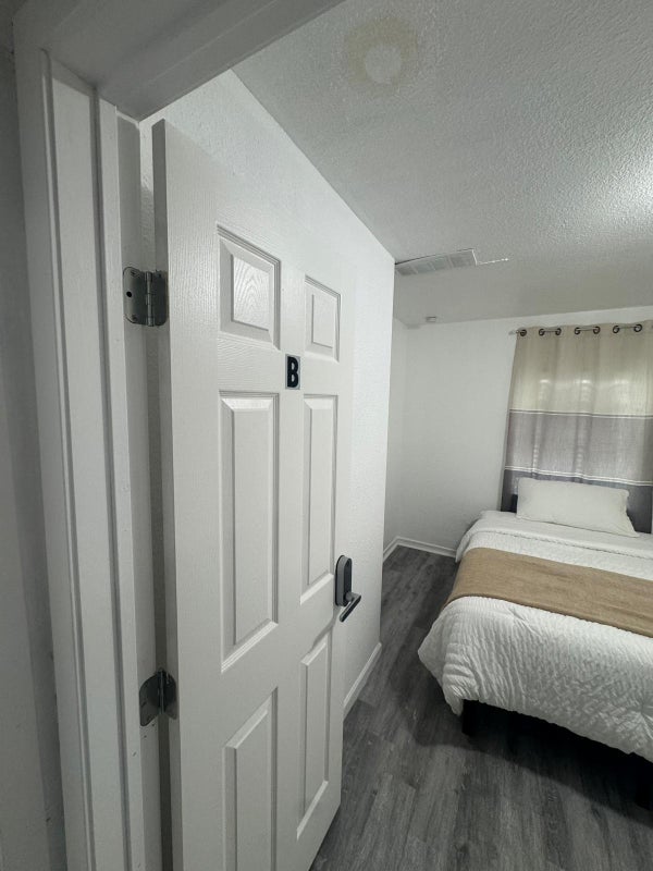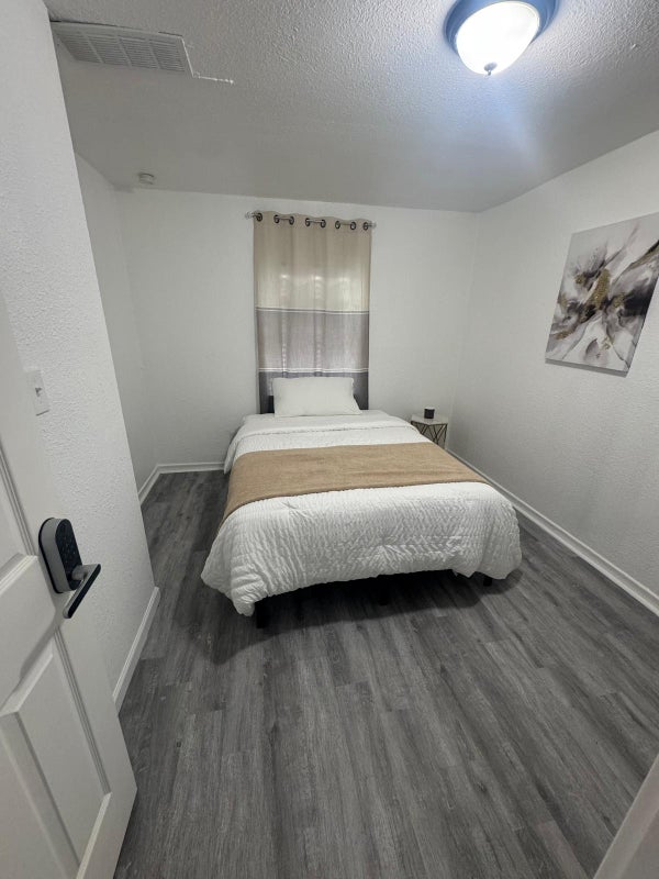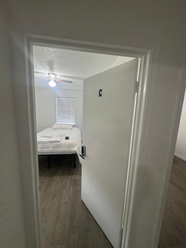 The house has a shared kitchen and bathroom and a respectful living environment. Each tenant has their own entry code with a smart lock, and the exterior of the house has security cameras.