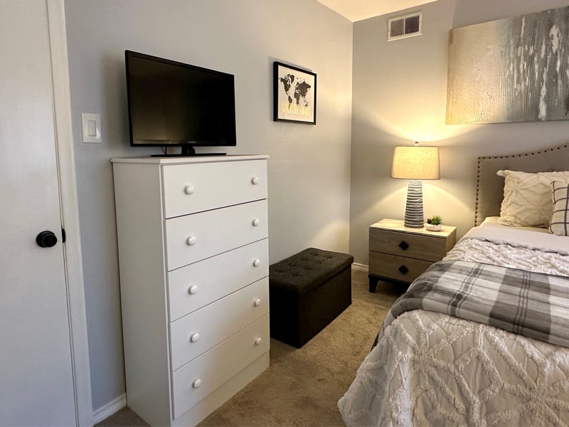 Located in a very safe and peaceful neighborhood, youll often see neighbors walking their dogs, running, or riding bikes. We offer a private room for a lady, including an office desk inside the room. The home is spacious, with a large living room, high ceilings, a comfortable couch, and a TV in the room. There is also a large backyard with tables and chairs to enjoy.