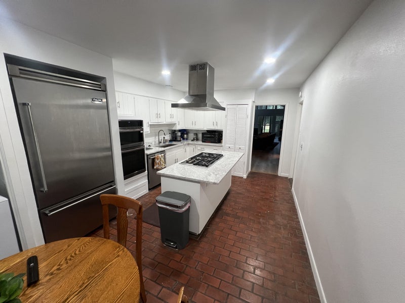 The home has a chef's kitchen with Viking professional refrigerator, Wolf cooktop, Bosch dishwasher and LG signature oven, microwave and air fryer. Full deep freezer in the garage as well. It has a wet bar that was recently redone with new granite and lighting. The living room has cathedral ceilings with recessed, dimmable lighting.