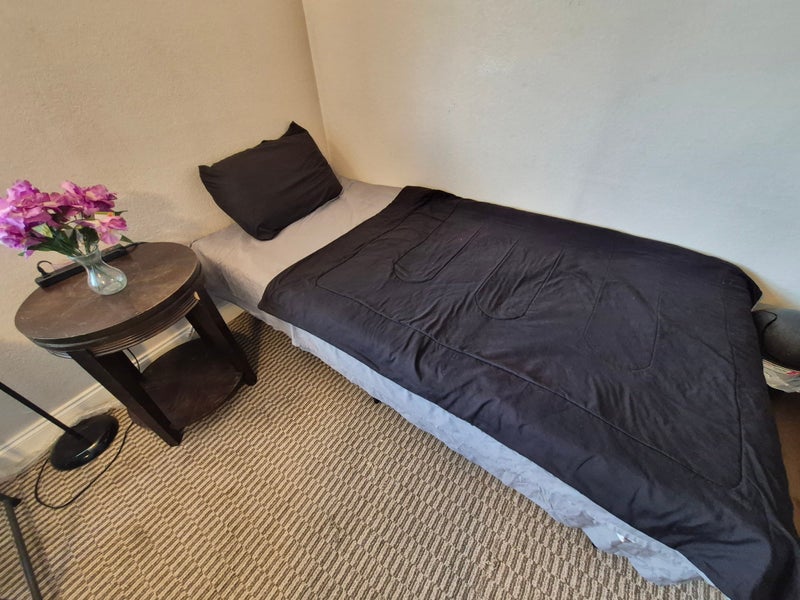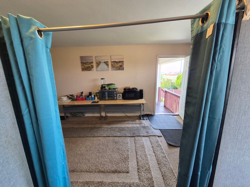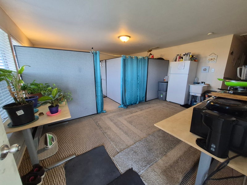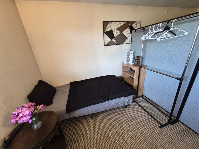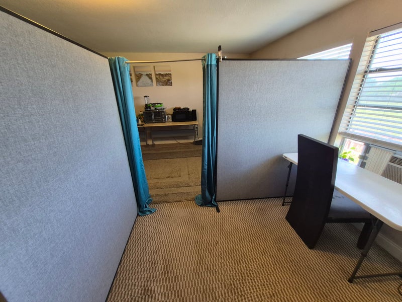 Welcome to a cozy, private living space with partitions and curtains with access to a small kitchen space and bathroom. This is not a private bedroom. This space is located on the second floor of a large home, overlooking the walking trail that leads to Breckinridge Park, a acre park with trails and ponds. It is minutes from the Walmart Supercenter and most essential shopping needs. Laundry is available once a week. Space has its own AC unit. Affordable living in a beautiful home.