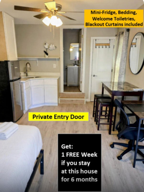Private furnished room for rent. Enjoy living in a newlyrenovated House. This comfortable home is decorated with modern touches while providing the basic necessities. All that’s missing is you! The kitchen is equipped with a fridge, sink, oven, stovetop, as well as more than 1 fridge. It’s the perfect spot for you to cook at home and save money. The surrounding location is close to public transit, making it the perfect place to call home. $0 per week. Room rate includes all utilities, high speed WIFI, free laundry access, and Teladoc service. PROPERTY ID: 2