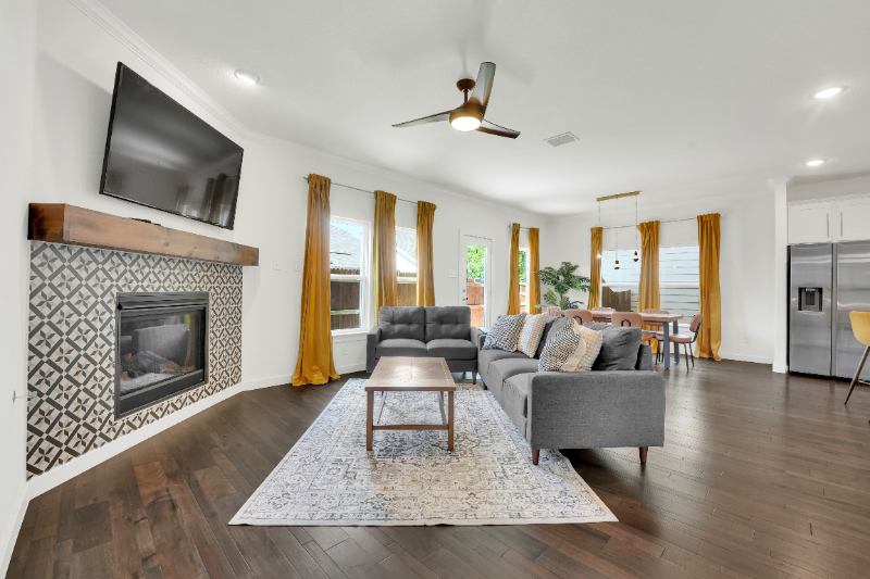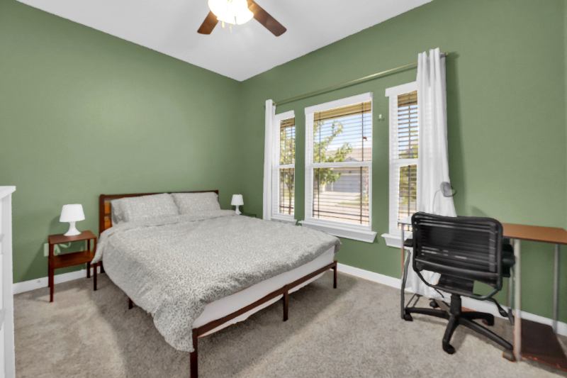Enjoy a private, spacious bedroom with shared bath in a newly remodeled BR home in a calm residential area. Centrally located near TWU, UNT, Medical City Denton, & Texas Health Presbyterian. Room includes digital door lock, Queen bed, work station, dresser, large closet, and a separate coat closet for extra storage. Home features monthly professional cleaning of common areas, modern appliances, stylish common spaces, fenced & turfed backyard, inunit WD. Free street parking. All utilities and WiFi included.