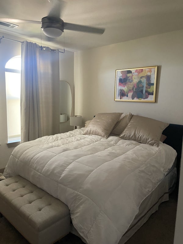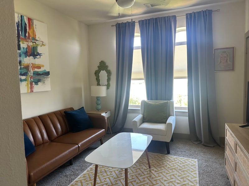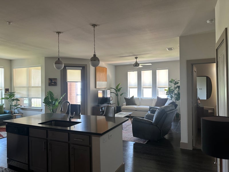 This special place is close to everything. Lakeside penthouse with stunning lake views from two patio’s. Furnished, clean, parking garage and half mile from I35 and lake shore boat rentals. Adult and family restaurants, bars, entertainment, with national and specialty retail stores less than 3 miles away in Highland Village and Flower Mound. Furnished living room with connected dining and all kitchen appliances, includes bar stools with lake view and screened lit patio with fans. Washer, dryer in unit. Central heat and air. Pool, hot tub and gym on site. Trash pick up. Smoke on the patios. Bike trail on site with access to state park and train stop to Dallas areas and Denton with in walking distance.
