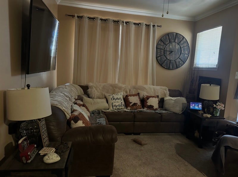 My daughter just moved out and she had the master bedroom, bathroom, and closet. Room already furnished with beautiful queen bed, two end tables, lamps, and 65 inch mounted big screen. They are about to put in brand new carpeting. I’m on my fourth lease here. Amazing view overlooking hill and pool and the bottom of hill. Gated community. I have a friendly four-year-old boxer and do not want to add additional pets. Kitchen and living room are fully furnished with a new stove and dishwasher. I have a security system already installed. Washer and dryer in unit. I purchased brand new when I moved in. Small patio with comfortable patio furniture in an amazing area, very clean very close to Hawaiian Falls in Roanoke. You would need your own mattress bedding, and room decorations. Credit and background check. TV with all the movie channels and high-speed Internet with super convenient access to Highway 114 and within about three minutes of many restaurants, gas station, and a Walmart. Electric included within reason, water included. Community gym available 24/7. Pool open seasonally. Park nearby. Barbecue pits available first come first serve. One parking spot available, not designated or covered. Your own gate key fob will be provided. Looking for female roommate only. I keep the apartment very clean. No criminal history and I pretty much keep to myself.