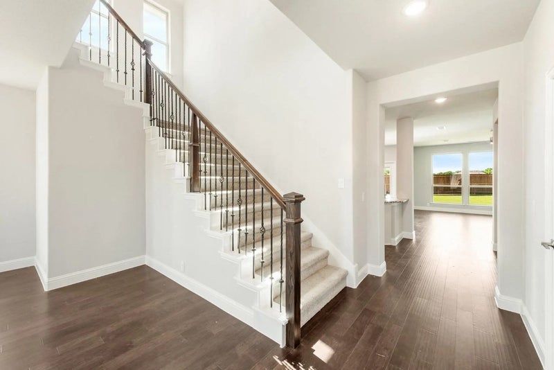 Located on an expansive corner lot with greenbelt views. A new two-story home which offers 5 large bedrooms, a Deluxe Kitchen, Formal Dining room, and Upgraded engineered wood floors throughout the open concept living space. Gas Log Tile Fireplace creates a mesmerizing ambiance in the Family room, and offers an enormous backyard.