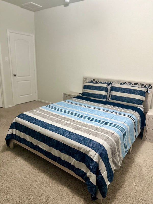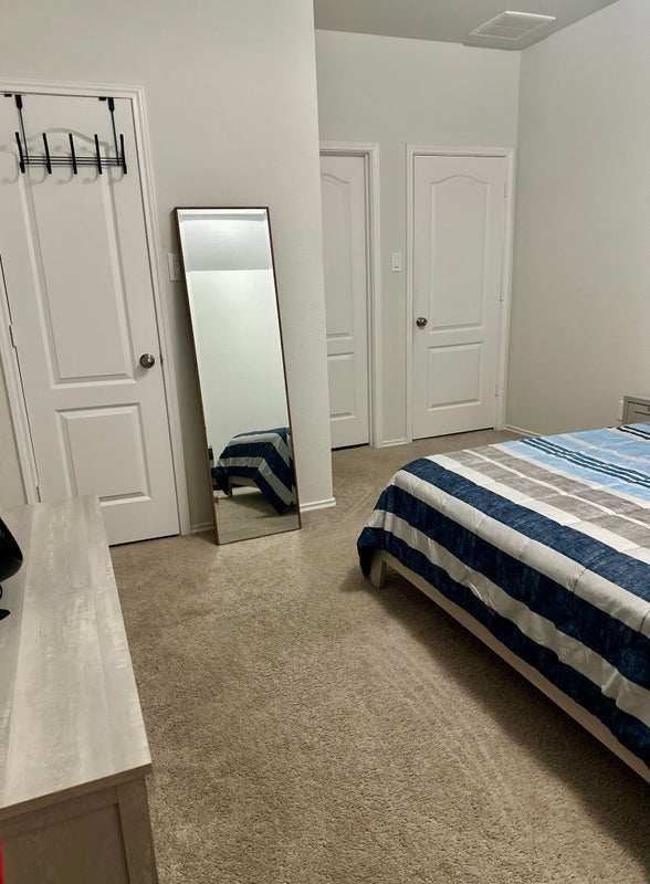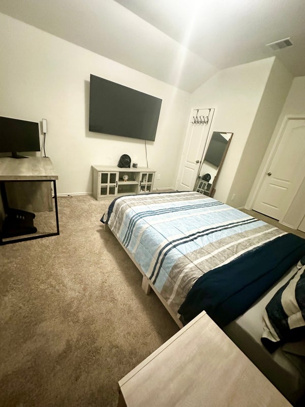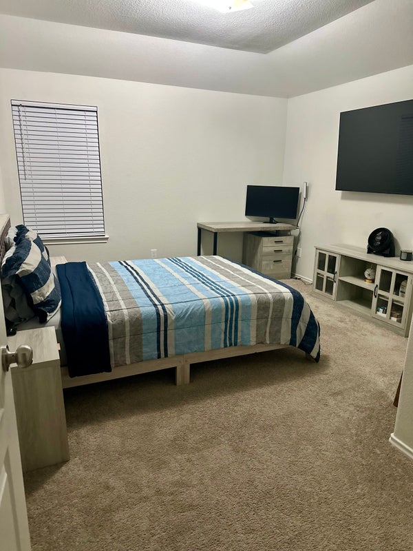 This is a SHARED SPACE, fully furnished bedroom + private bathroom + TV in a beautiful home located in a quiet and safe newly constructed community with a trail overlooking a lake and a fountain. The living room offers a functional space with a comfortable sofa, TV for your entertainment and access to highspeed internet. The bathroom includes a tubshower combination and framed mirrors for convenience. The bedroom provides ample storage space and is designed for comfort and added privacy with door lock. Shared kitchen is equipped with dishwasher, microwave, cooktop stove, oven, fridge, freezer, rice cooker. Additional amenities include on site parking, and inunit washerdryer. The exterior is wellmaintained, contributing to a pleasant living environment. There is a nice backyard with patio and grill. The home is equipped with a security surveillance system for added peace of mind.