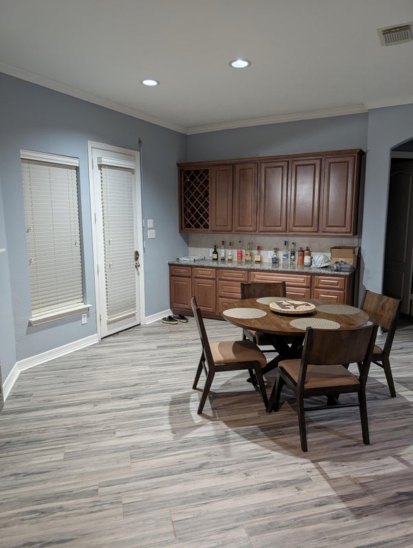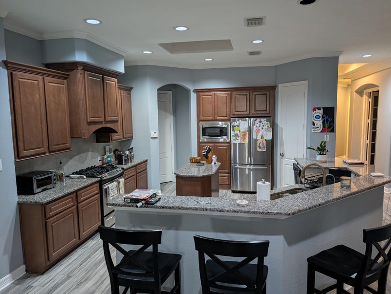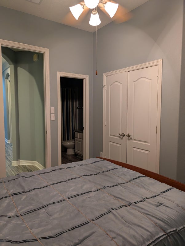 1 bedroom, with queen bed, closet, and private bathroom. Common areas are accessible such as office, dinning room, living room, utility room, and kitchen. You'll have the whole house to yourself when I'm not there, which is most of the time until August 2026.