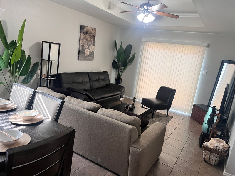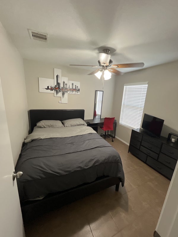 Just bring your suitcase. Everything is already available on site. It’s a 3 bedroom house. I occupy the master and use 1 of the bedroom as my office as I WFH. I have 1 living room and A gaming room and a gym in the garage including Boxing equipment, weights , pool table, entertainment area . The backyard is a cozy place that includes bbq pit and an above ground pool and more.