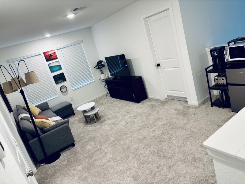 The second floor is set up to create a semi-private living space for tenants. You'll have access to a furnished game room with a TV, perfect for relaxing or unwinding. For added convenience, there is a dedicated refrigerator, microwave, toaster, coffee maker, and kettle upstairs, so you can prepare simple meals and drinks without going downstairs. The shared bathroom features a tub-and-shower combo and is also located upstairs.