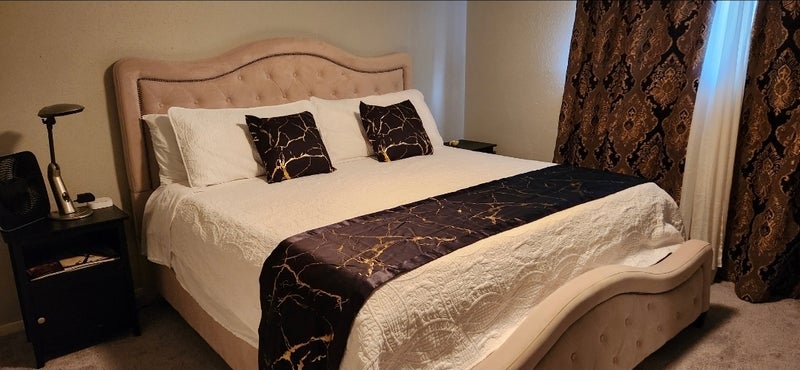 Private guest room with private bathroom. Use of laundry and pool is included. Cable and internet included. Luxury mattress, mini fridge, microwave, and coffee maker with all supplies included.