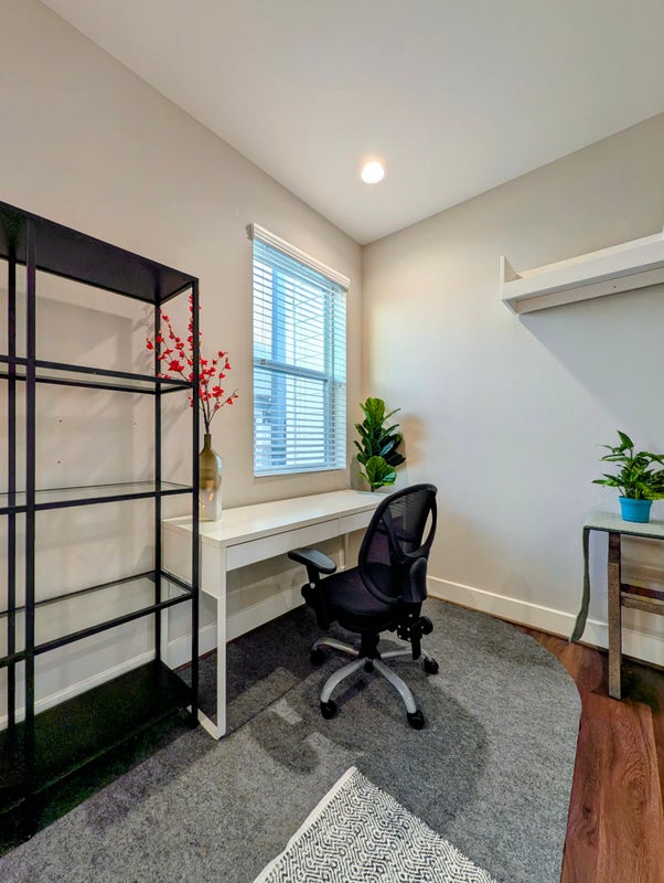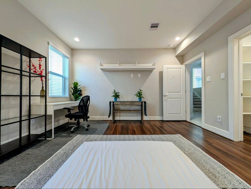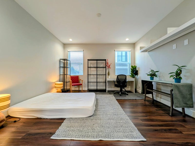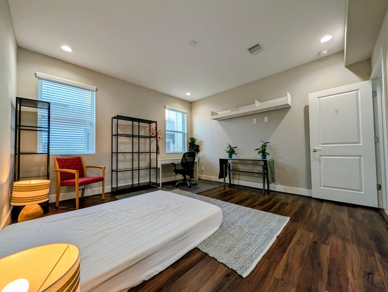 Located on the 1st floor of a modern 3-story house. Attached private bathroom and walk-in closet.