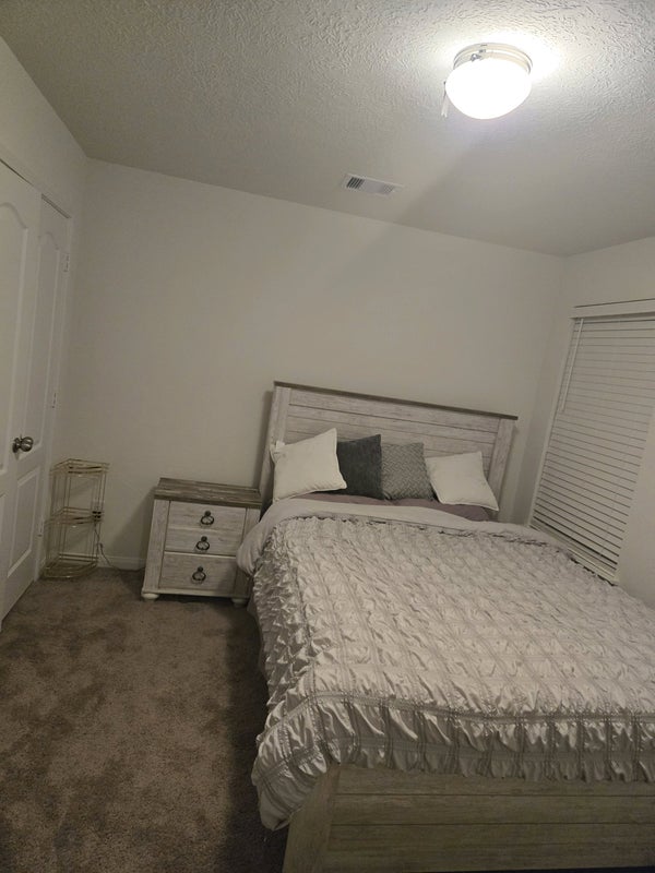 Room with queen bed, dresser, windows facing the sun rise, have your own private bathroom, and also study area.