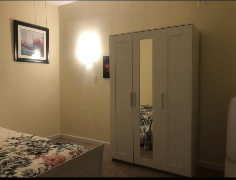 Furnished room in big house , you have access to laundry room and kitchen as well and high-speed Internet. There is three bathrooms available. The house has a main entrance.