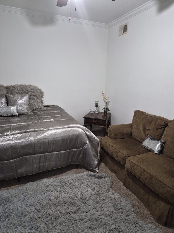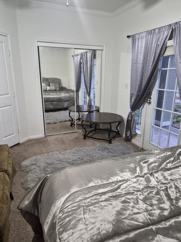 Room for rent with private patio and private entrance. Ceiling fan with light kit full length mirror built in to closet doors. Beautiful lighting from the lovely windows. Looking for dependable quiet roommate. Bring your own furniture or we can help you out. We work 5 to 6 days a week.... quiet nights. Homebodies. We have two cats. Beautiful community with lots to offer. Ready for move in 04-1-2026