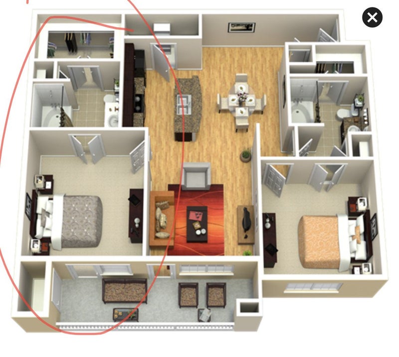 Layout of Apartment. Master Bedroom Available to Potential Roommate