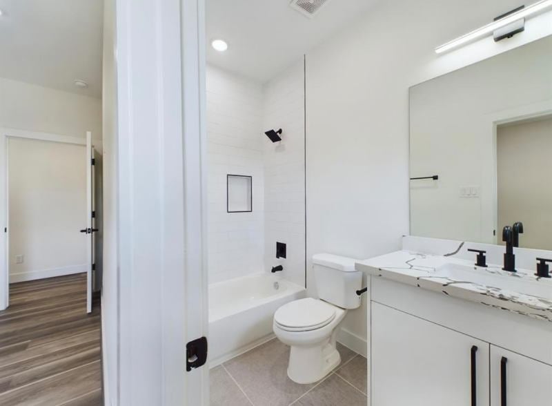 A bedroom with attached bathroom and closet in a gorgeous bed.bathroom new constructed twostory house, well equipped home with a spacious backyard and living room and parking space. The house is just minutes away from medical center, NRG, UH, Downtown, and Midtown. Fully furnished home but unfurnished room. Availability: Starting May Backgroundcredit check required No smoking or pet allowed in the house