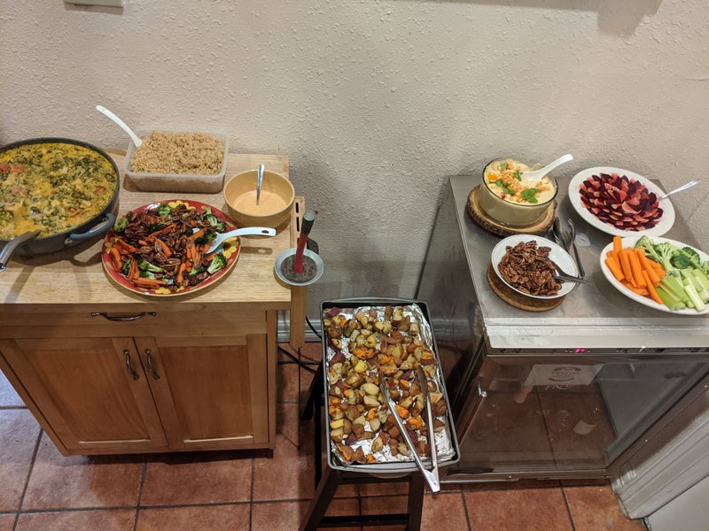 What kind of food is served for dinner? We prepare vegetarian/vegan-friendly meals. All food purchased with our house budget is vegetarian but many residents also cook and eat their own purchased meat.