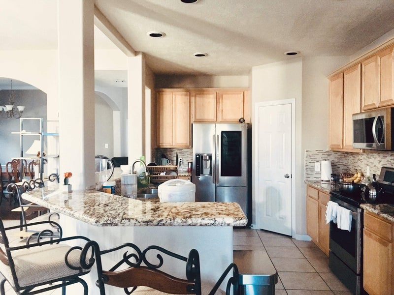Amenities include blazingly fast WiFi (up to 500 Mbps), fully-stocked kitchen, access to community pool, stainless steel kitchen appliances, washer & dryer, a small backyard, bedroom door lock, and two home gyms!
