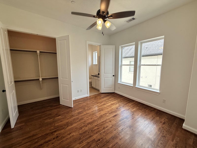 Unfurnished room in 5-bedroom house in the Cottage Grove/Heights area. It's a spacious 4-story home with a large living room with a beautiful gourmet kitchen. There's a terrace on the 4th floor with views of the Houston skyline, as well as shared washer/dryer in the 2nd floor. Tall ceilings and hardwood throughout, no carpeting. The rooms have plenty of storage and there are many additional closets throughout the house, as well as extra storage in the garage. There's parking available at a designated lot one block from the house (included with rent), or are free to use street parking (although street parking can be limited in this neighborhood). Must be OK with dogs and cats. No smoking inside. Room in the photo includes private bathroom and step-in closet, as well as an additional walk-in closet right outside of the room. Utilities included.