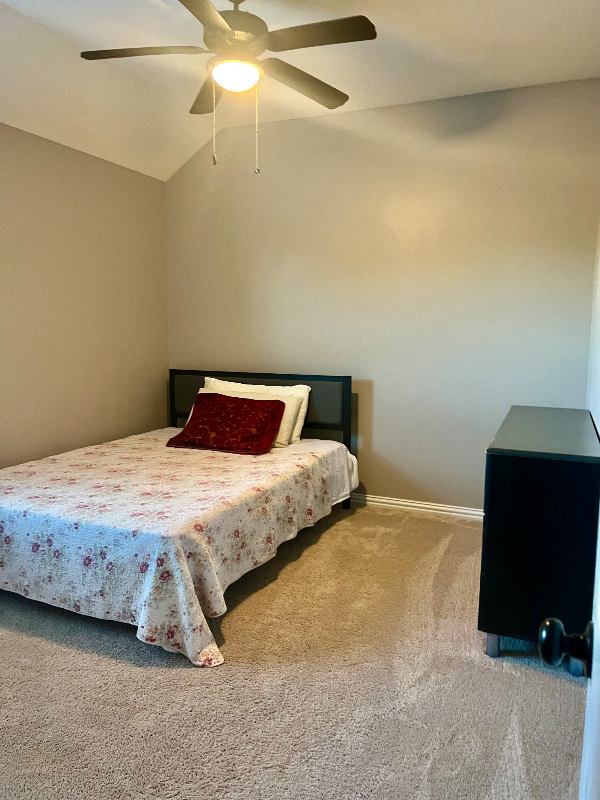 This private bedroom offers a queen bed, a spacious dresser, a window, and a closet. Your rental also provides access to a bathroom, laundry area, kitchen, living space, and a large backyard with a covered porch. Enjoy fantastic neighborhood amenities, including a pool, park, walking trails, and a basketball court! All utilities included.