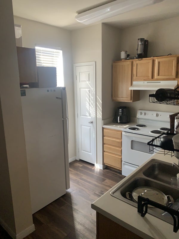 one full personal bathroom, one half bathroom for the downstairs living area. washer & dryer / fridge & freezer / large living room / lots of cabinets / plenty storage & closet space. (dining table in photos not provided, but willing to lend [original apartment’s table is in storage currently])