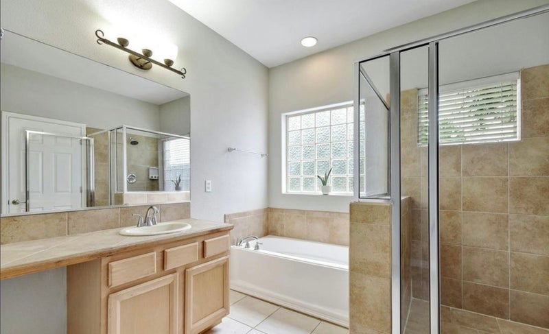 Unwind in your own wing of the house in the primary bedroom with plenty of space and natural light. The en suite bathroom is large with a walk in shower and separate bath tub. It also has its large walk in closet. To top it off, it has its own separate private porch/entry and parking space.
