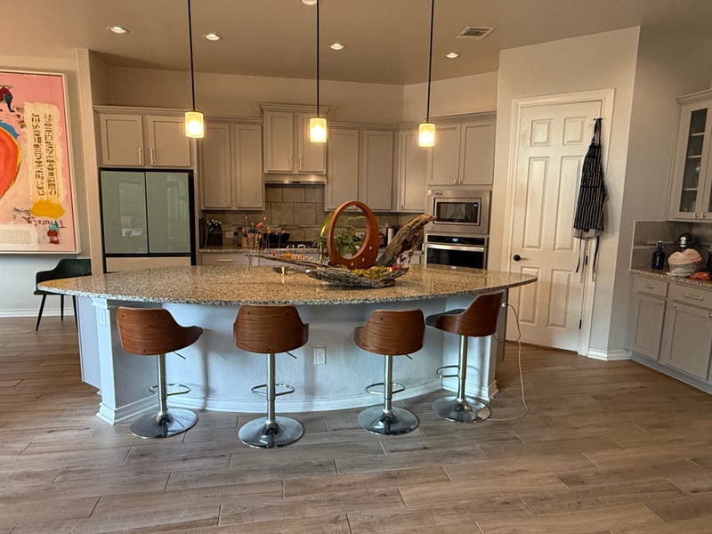 Custom built in 2023 with large common area and newer appliances and high volume ceiling. Can come with queen size beds. Nice closets and huge kitchen and dining area that fits 10. Separate laundry room and patio bbq sitting 6and spacious backyard. Everything you could possibly want in a custom house. Plenty of parking and one the best neighborhood to live in San Marcos. Close to Costco HEB and a new Buccees, large soccer field and community pool.