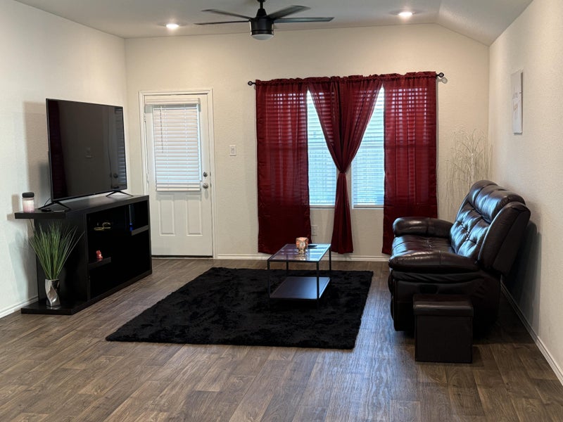 just 2 miles from downtown Kyle and 4 miles from Kyle H‑E‑B.. it’s Uhland but location is basically Kyle.. very quiet, clean and safe neighborhood.. the bathroom is right outside the bedroom.. It’s a 3 bdrm/2 bath house. I have 1 male roommate. We are laid back and clean. A very comfortable and peaceful space. Room has a queen size bed ready for you to make it your own comfy space.