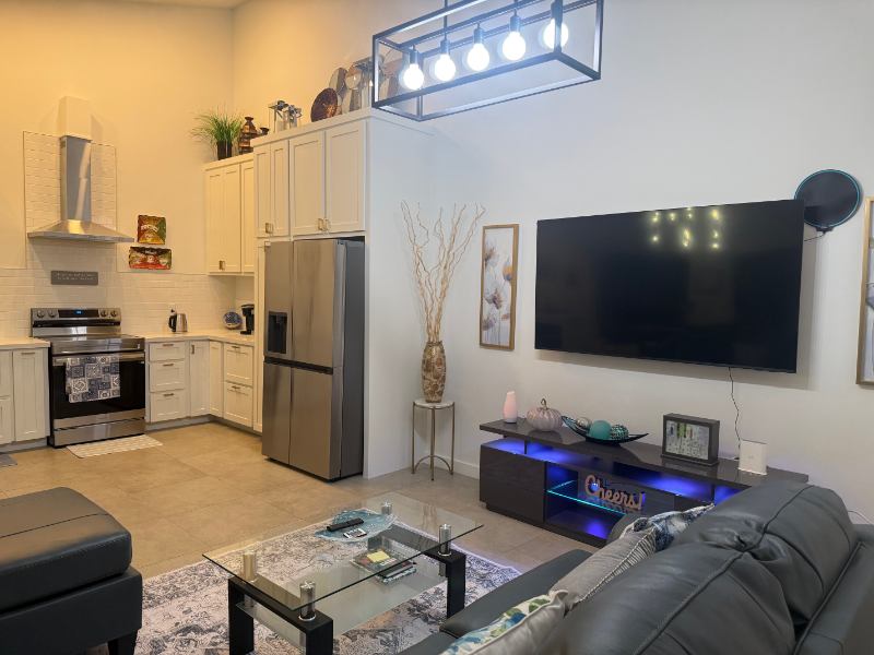 This is a coliving setting wherein each guest occupies private bedroom but shared kitchen, dining and living room with the other guests this bedroom suite is with queen size bed, own bathroom, work table has direct access to the back porch with complete beddings. Guest will have everything they need for a comfortable stay, It has an easy access to shopping, dining , parks, schools, healthy food stores, fitness centers. It has open floor plan with a bright airy living space, granite counter, in house washer and dryer. backyard patio, it is fully furnished, all utilities included and pet friendly, additional fees on bringing pets.