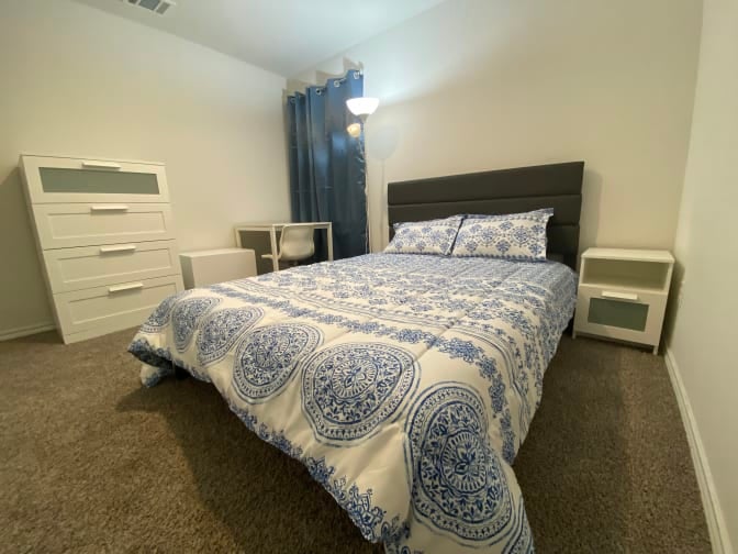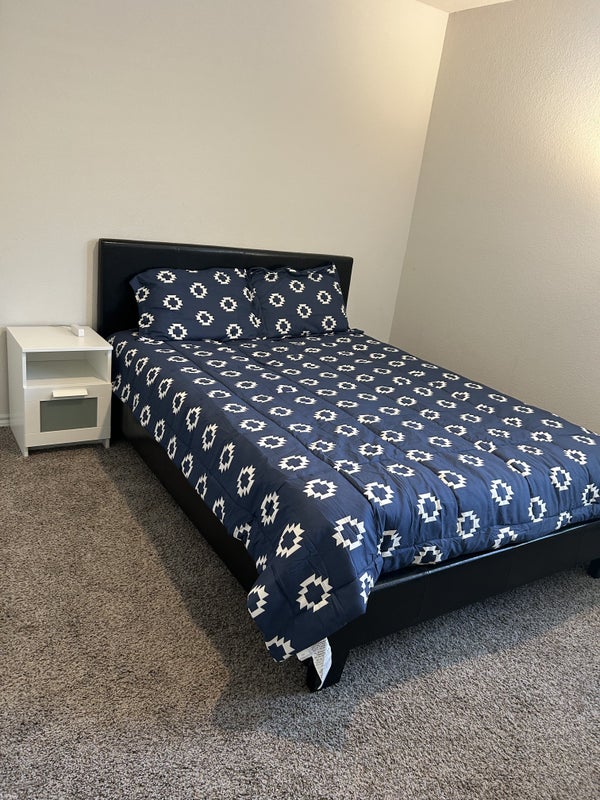 Private furnished bedroom available in a peaceful, well maintained home. Includes queen bed, dresser, desk and closet. Shared bathroom, kitchen and living areas. Access to laundry. Utilities and internet included. Safe and convenient area close to 80 highway access and Costco.