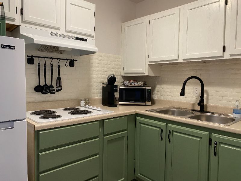 AMENITIES: • Kitchenette: Fridge, stove, microwave, and Keurig. (Note: No oven).