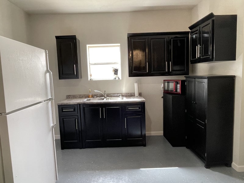 Studio apartment separate dwelling from main house. Includes small kitchenette, private bathroom, glass/screen door. There is no stove at this time but a stove will be provided ASAP. Apartment includes a refrigerator and microwave, AC and heater equiped.