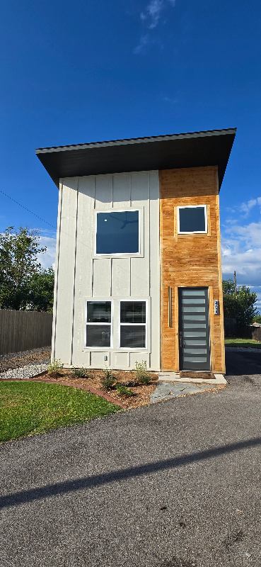 An exquisite story, sq ft, bedroom, .bathroom space is captivating in its modern elegance and thoughtful storage space saving design, with an inviting open concept layout that seamlessly flows from living area to the kitchen, build in electric fireplace, sleek kitchen finishes, stainless steel high end appliances, and storage. Solid natural hardwood floors, rod iron accents, touch light & defrost mirrors, motion sensor sink, glass rinser, luxury shower head & spray nozzles, all beautiful elegant touches of sophistication with windows, open balcony, & vaulted ceilings exude spaciousness, beautiful back patio, large yard bring a unique charm to this roomy yet efficiently designed Tiny Loft Home!