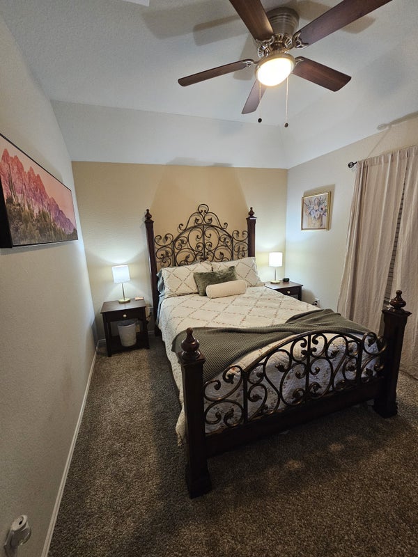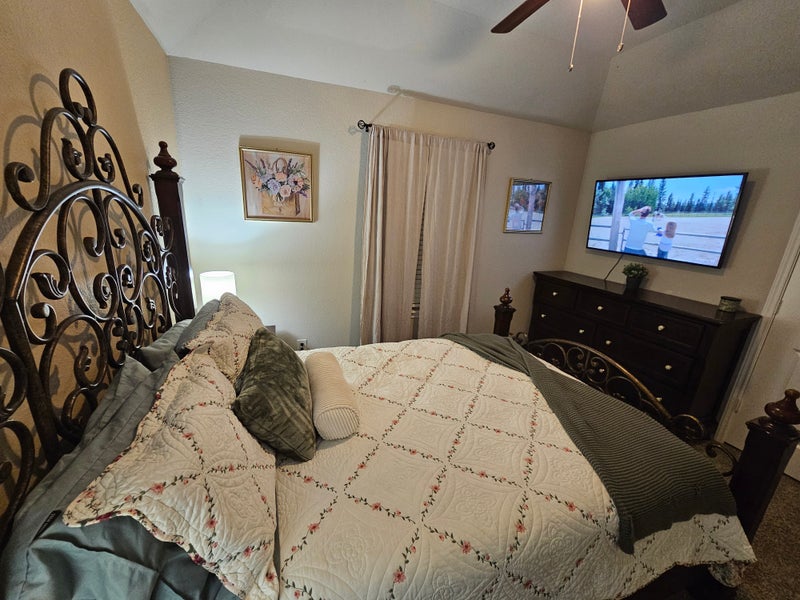 This room is beautifully furnished and a comfortable space. Comes with private bathroom, access to all common areas, back yard and access to the park and community amenities and pool. The landlord is friendly and a business professional who creates a great living space and is an excellent cook. May remove furniture if preferred